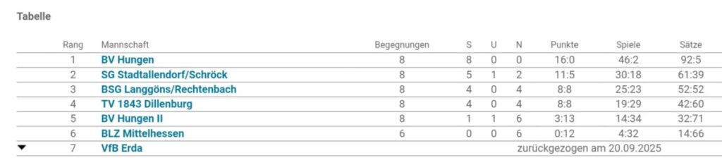 Das schwierigste Spiel für die Schäferstädter fand bereits am ersten Spieltag beim aktuellen Tabellenzweiten aus Stadtallendorf/Schröck statt. Dort siegte die Truppe um Benedikt Busch, Nevio Maikranz, Jano Lehmann und Finn Beyer knapp mit 4:2. Es sollten die einzigen beiden abgegebenen Einzelspiele bleiben. Alle anderen Spiele wurden mit 6:0 gewonnen. Bei den wenigen Ausfällen standen mit Alexander Kotschanow und Julian Bender starke Aushilfe parat. Die zweite Mannschaft rangiert auf einem guten fünften Platz. Nächstes Jahr rücken einige der Spieler in die U17 auf, während mit Maikranz, Lehmann und Beyer die meisten Spieler der Ersten wieder in der U15 antreten können. Insgesamt spielen in diesem Jahr neun Jugendmannschaften für den Bv Hungen. Neue Spielerinnen und Spieler sind immer herzlich willkommen. Ein Training ist bereits ab fünf Jahren möglich. Das Jugendtraining findet immer dienstags und freitags statt. Kontakt erhalten sie über den Jugendwart Jan Krüger (jfk79@web.de).