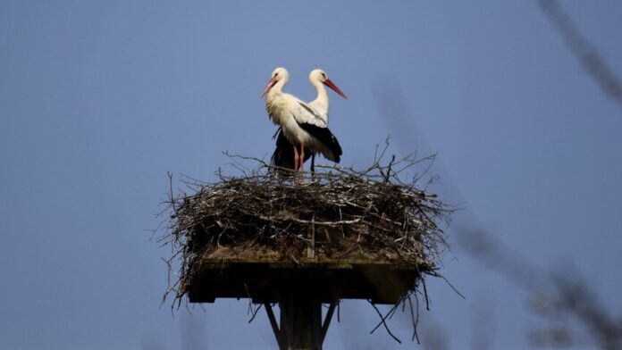Nachdem ich außerhalbs Hungener Feldgemarkung Hubbach “Teufelswiese” – das auf einem Horstmast befindliche Nest mit den beiden Weißstörchen fotografierte, trat ich auf dem tollen Bahntrassen-Radweg die Heimreise an.