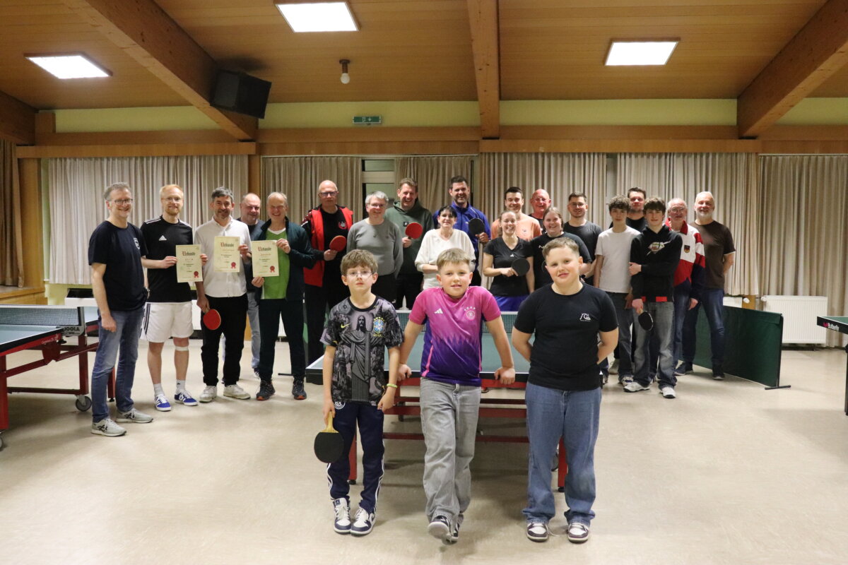 Die mit viel Spaß und Begeisterung angetretenen Teilnehmer beim Jedermann-Tischtennis-Turnier in Lardenbach