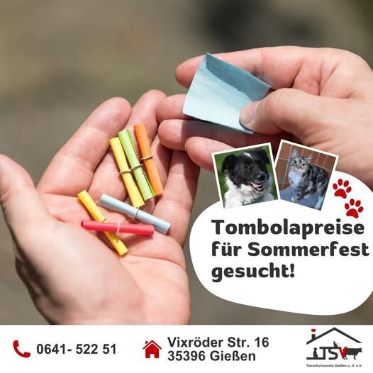Tombola-Preise gesucht: Tierheim Gießen bittet um Unterstützung für das Sommerfest 2026!