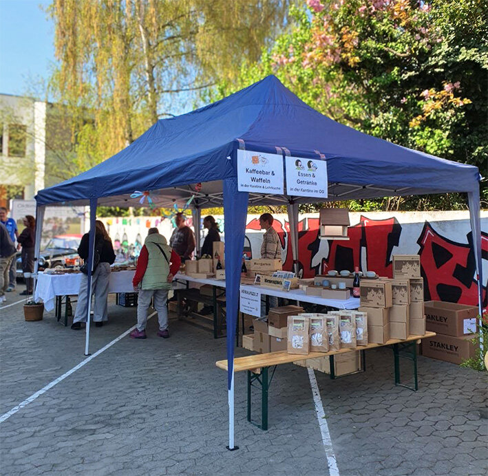 Wer eine Pause einlegen wollte, fand in der Cafeteria ein vielseitiges Buffet und Gelegenheit für Austausch. Stefan Bolz, Leiter des Berufsbildungsbereichs, führte über den Tag hinweg Schulklassen, Eltern und Gruppen aus dem Betreuten Wohnen durch das Haus. Er war sichtlich stolz auf das Engagement aller Teams. „Unser Motto – bunt, informativ und offen – haben wir absolut getroffen”, sagte er.