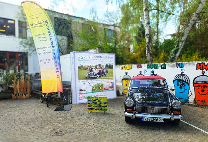 Im Hof zog sofort das schwarze Cabriolet mit rotem Verdeck die Blicke auf sich – es ist Teil der diesjährigen Oldtimerspendenaktion der Lebenshilfe. Teilnehmen kann man noch bis zum 20. Januar 2026, gerne auch online unter www.oldtimerspendenaktion.de. Daneben präsentierten Beschäftigte handgefertigte Produkte: Schmuck, Holzarbeiten, Honig, Steingut und vieles mehr. Manche Erzeugnisse konnten die Gäste auch direkt selbst vor Ort erstellen, etwa Schlüsselanhänger im Werkraum oder selbst gestaltete Blumentöpfe in den Räumlichkeiten der Tagesförderstätte.