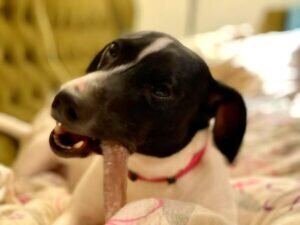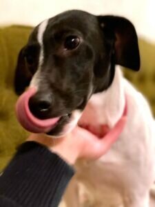 Die Hündin ist freundlich und spielfreudig mit Artgenossen.