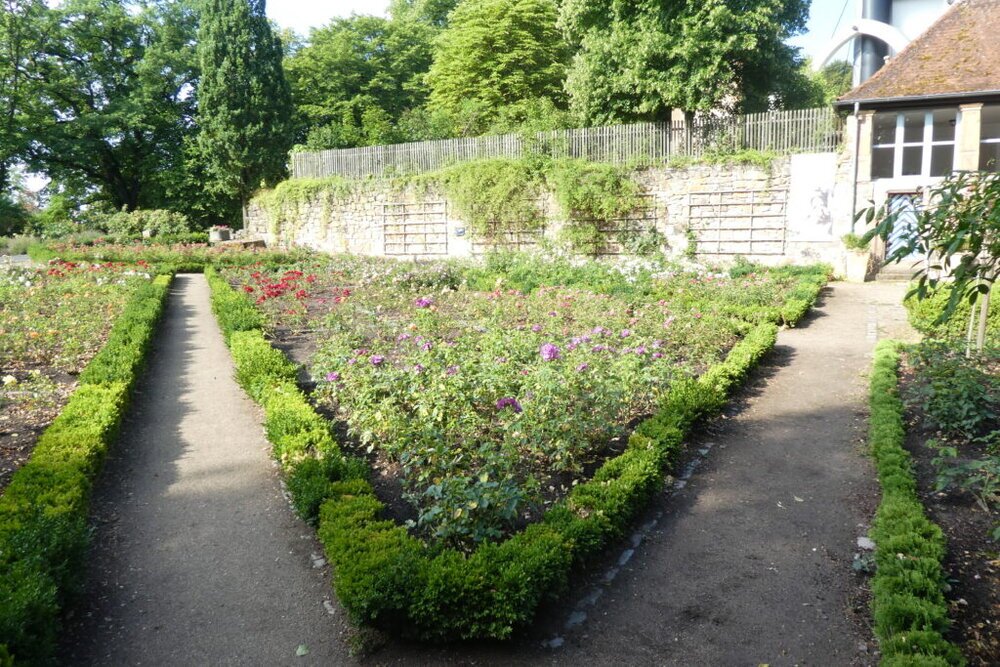 Durch den geschmackvoll angelegten Schlosspark mit herrlichem Ausblick auf die Stadt führte der Lahnwanderweg auf Wald- und Wiesenwegen um den 318 m hohen Dammelsberg. Erstes Zwischenziel ist die Hermann Bauer-Hütte. 50 verschiedene Wildrosen und frühe Kulturrosen sind blühende und duftende Wegbegleiter. Wunderschöne Zeichnungen des französischen Pflanzenmalers Pierre-Joseph Redouté zieren die Infotafeln.