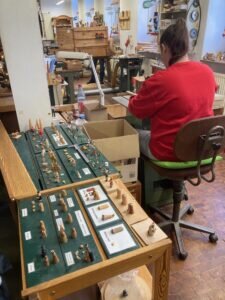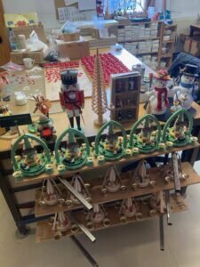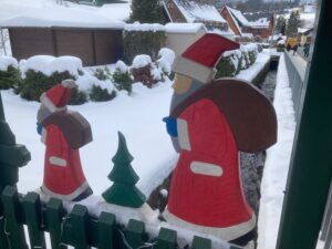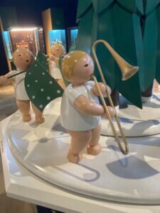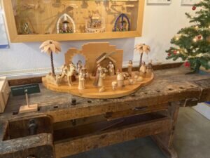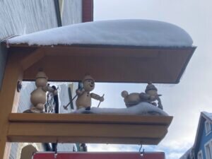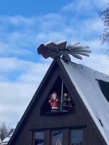 Im Dezember haben wir einen Ausflug nach Seiffen im Erzgebirge unternommen. Passenderweise war gerade in den Tagen zuvor Schnee gefallen. Alles sah herrlich weihnachtlich-winterlich aus. Dementsprechend war der Touristenstrom in diesen kleinen Ort sehr groß und in den Schauwerkstätten gab es kaum ein Durchkommen. Aber sobald man sich von den Hauptplätzen und dem Weihnachtsmarkt entfernte, konnte man von der Beschaulichkeit etwas erahnen. Von traditioneller Schnitzkunst bis hin zu modernen Designs kann man in den vielen kleinen Läden einiges entdecken und in den Werkstätten waren Mitarbeitende gerne bereit, Fragen zu beantworten. Es lohnt sich ein Besuch im Spielzeugmuseum, das für groß und klein einiges zu bieten hat. Auf drei Etagen werden den Besuchern tausende Exponate der erzgebirgischen Spielwaren – und Weihnachtstradition präsentiert und durch Hintergrundinformationen erläutert. Besonders beeindruckt viele die 6,30m hohe Raumpyramide. Die ältesten Exponate stammen aus der Zeit um 1800. Etwas entfernt vom Touristenstrom findet man auch eine Modelleisenbahnausstellung mit einer Gesamtfläche von 450 Quadratmetern.