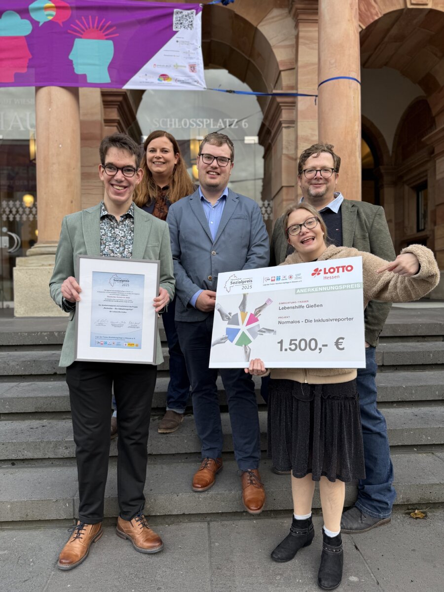 Wiesbaden/Gießen – Große Freude bei der Lebenshilfe Gießen: Die inklusive Social-Media-Redaktion „Die Normalos – Die Inklusivreporter“ wurde am Dienstag (21. Oktober) im Wiesbadener Rathaus mit dem Anerkennungspreis des Hessischen Sozialpreises 2025 ausgezeichnet.