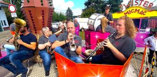 „Spielgemeinschaft Musikzug Holzheim und Blasorchester Lang-Göns“ musizierten auf Karussell bei der...