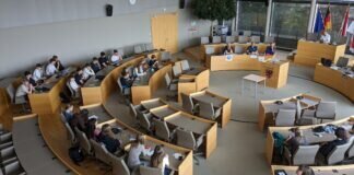 Jugend im Rathaus: Erstaunt betraten die Schülerinnen und Schüler den großen Sitzungssaal des Gießener Rathauses. Wo sonst die Stadtverordneten im großen Rund die Anliegen...