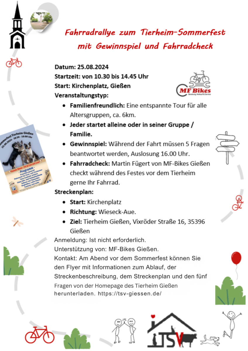 Bitte beachten: Die Fahrradrallye endet um 14:45! Das Tierheim-Sommerfest an sich um 18.00 Uhr.