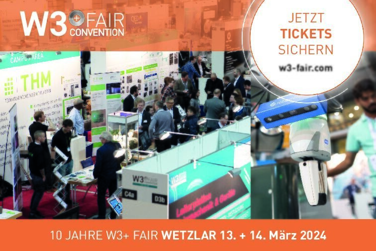 Wetzlar/ Mittelhessen ist das Zuhause der optischen Technologien. Mit der W3+ Fair wird seit 2014 ein fach- und Regionen-übergreifender Austausch und Wissenstransfer für die Schlüsseltechnologien Optik, Photonik, Elektronik und Mechanik geschaffen. Die Messe bietet eine einzigartige Gelegenheit für Entscheidungsträger, Experten und Interessierte, sich über neueste Hightech-Entwicklungen zu informieren, sich auszutauschen und wertvolle Kontakte zu knüpfen. Die Veranstalter erwarten gut 200 Aussteller, Partner und Referenten sowie rund 2000 Besucher.