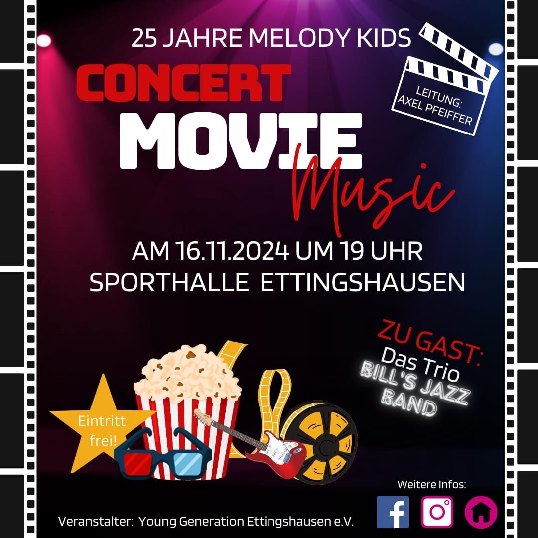 Das Konzert steht unter dem Motto „Movie Music“ und wird von den „Melody Kids“ und dem Jungen Chor der „Young Generation“ gestaltet – beide Chöre stehen unter der Leitung von Axel Pfeiffer. Zudem wird das Trio „Bill’s Jazz Band“ aus Lich zu Gast sein.