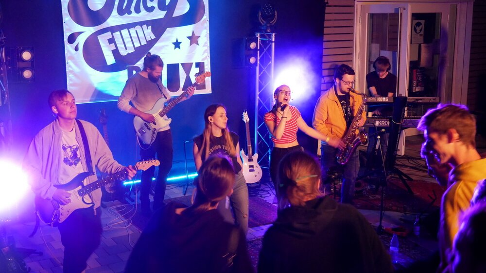 Die siebenköpfige Funk-Coverband aus Gießen spielt Musik der 70er Jahre bis heute zum Tanzen und Feiern. Dabei werden Coverversionen von Peter Gabriel, The Temptations, Mac Miller, The Rolling Stones, Dua Lipa und vielen anderen zu hören sein. Nati und Anna, Luca, Raffi, Maxi, Johannes und Paul sind ready to get funky.