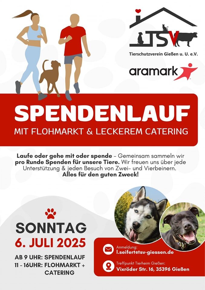 Am 6. Juli 2025 lädt das Tierheim herzlich zu einem besonderen Ereignis ein: Einem Spendenlauf zugunsten seiner Schützlinge, gefolgt von einem gemütlichen Catering-Event der Firma Aramark.