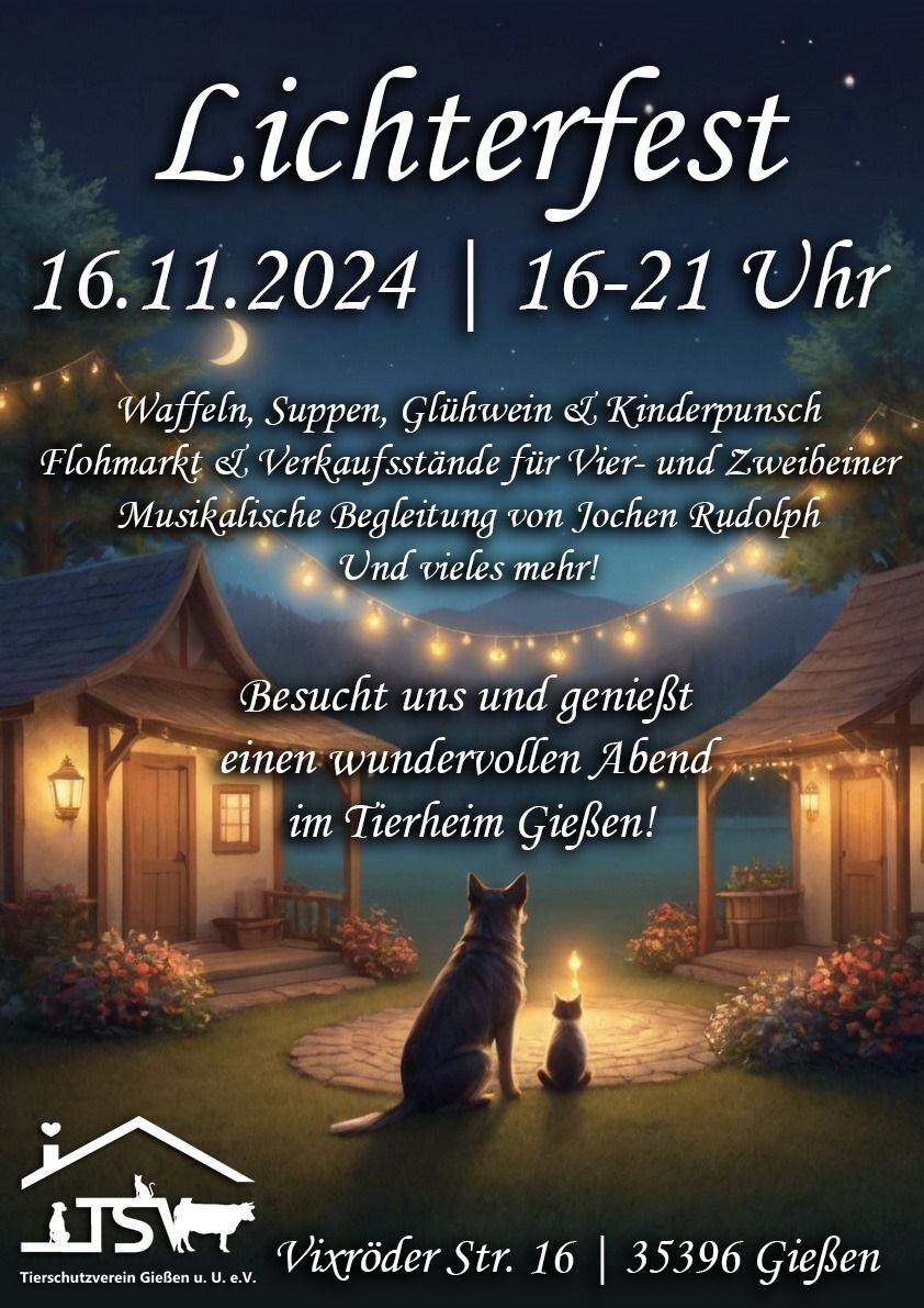 Wir laden Sie herzlich ein zu unserem Lichterfest im Tierheim Gießen. Besuchen Sie uns und genießen Sie einen wundervollen Abend.