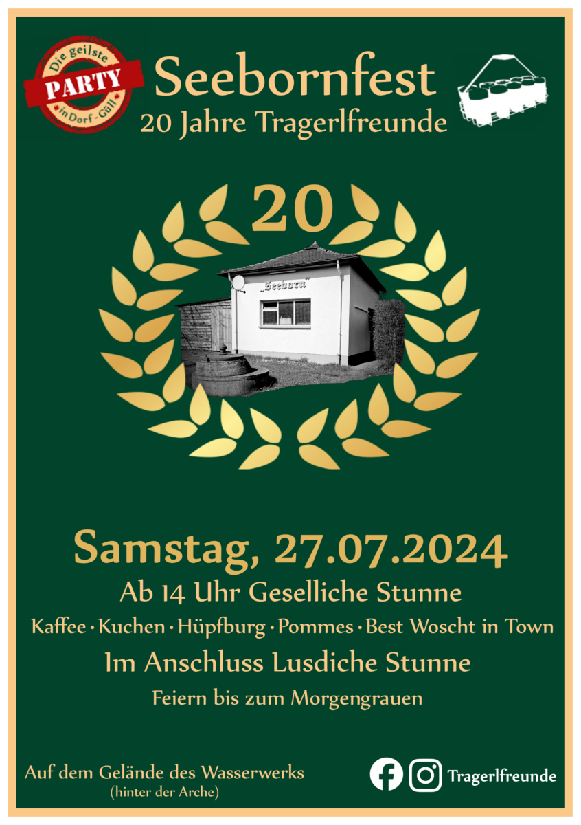 Die Tragerlfreunde des kleinsten Pohlheimer Stadtteils Dorf-Güll werden 20 Jahre alt und feiern am 27. Juli ihr beliebtes Seebornfest am gleichnamigen Wasserwerk – dem “Seeborn”.