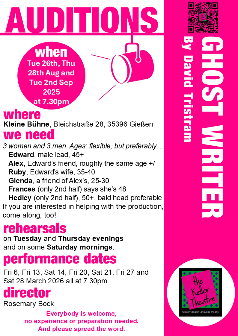 The Keller Theatre invites you to audition for “Ghost Writer”, a comedic thriller by David Tristram.