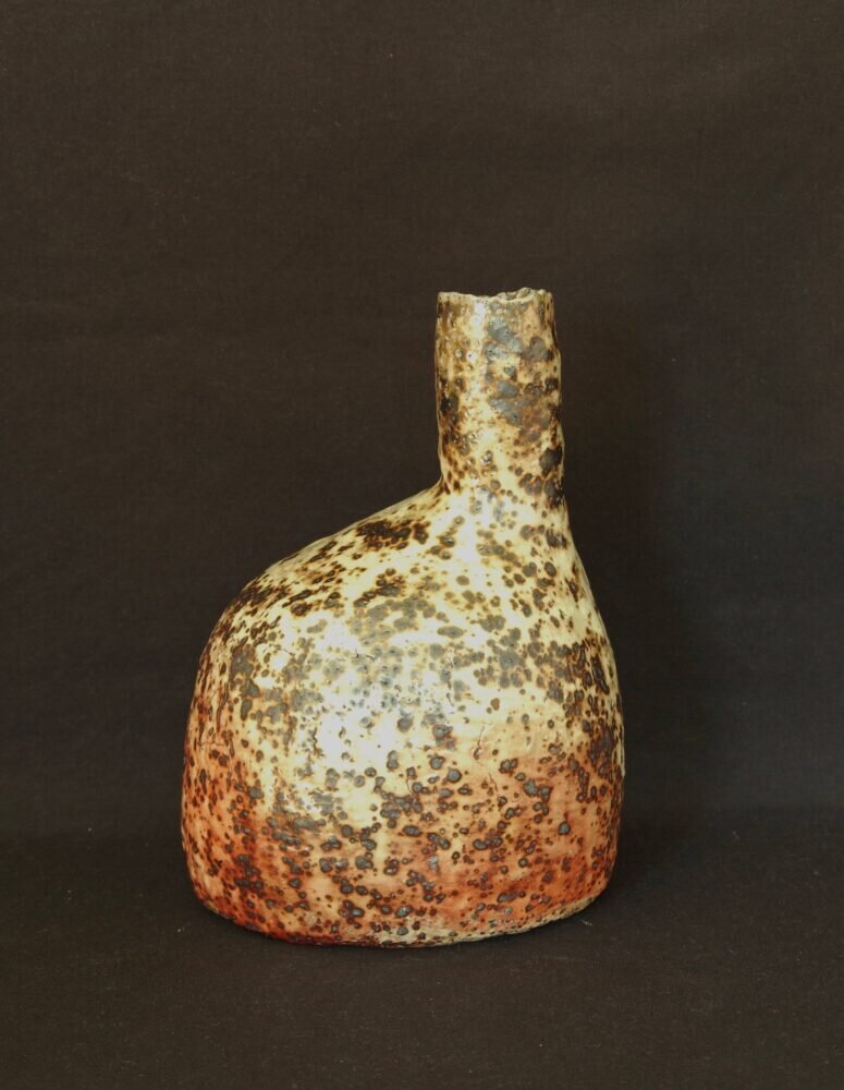Neben glasierten Arbeiten – überwiegend Shino und Seladonglasuren – werden auch viele Arbeiten zu sehen sein deren Oberfläche einzig aus geschmolzener Asche und Soda besteht.
