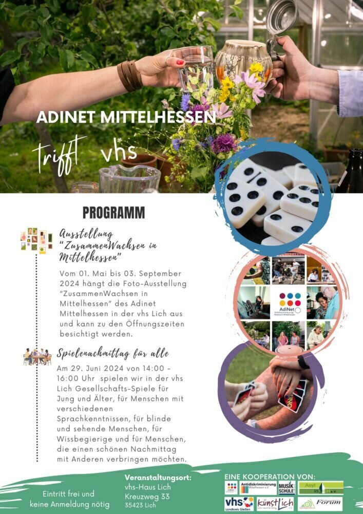 Dazu kann die Foto-Ausstellung “ZusammenWachsen in Mittelhessen” angeschaut werden, die noch bis 3. September im VHS-Haus in Lich hängt.