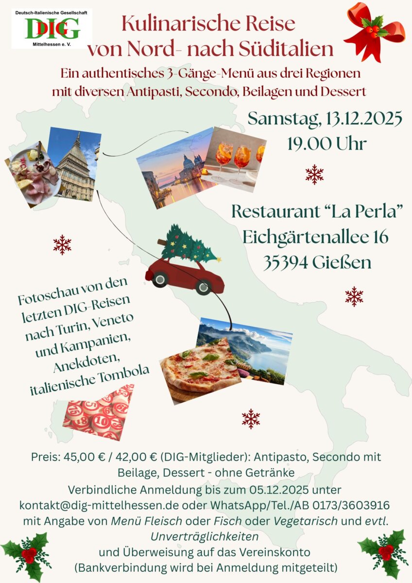 • DIG-Weihnachtsessen „Kulinarische Reise von Nord- nach Süditalien“
