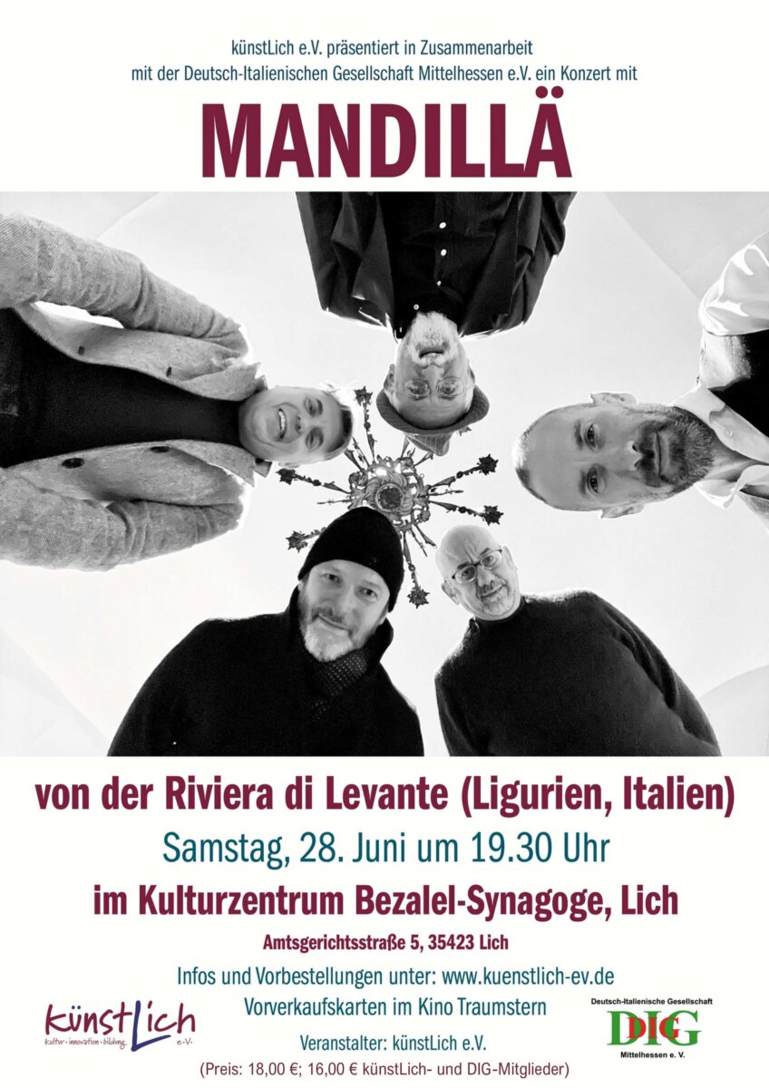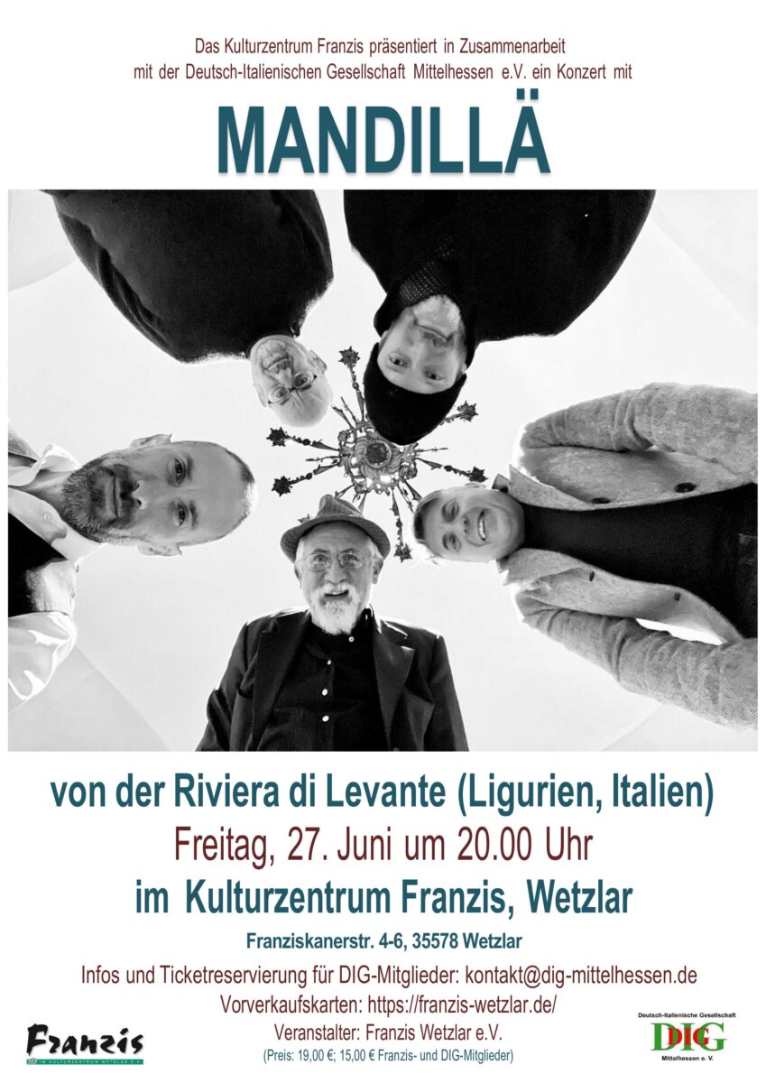 Die fünfköpfige Formation, die 2008 gegründet wurde, ist vor allem in ihrer Heimat sehr bekannt und hat eine Reihe von Preisen bei regionalen Festivals gewonnen. Der Bandname „Mandillä“ macht Anleihen bei dem berühmten Genueser Cantautore Fabrizio de André. Neben eigenen Kompositionen (im Genueser Dialekt vorgetragen) wird die Gruppe um den Sänger Giuseppe Avanzino auch eine […]