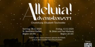 Die Sängerinnen und Sänger von Cantamus Gießen unter der Leitung von Elisabeth Tzschentke laden in die Bonifatiuskirche am Sonntag, den 8. Dezember 2024 zu...