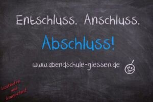 Sie haben den Wunsch nach einem höheren Schulabschluss? Dann sind Sie bei uns richtig! Der Schulbesuch ist kostenfrei. Informationen unter: www.abendschule-giessen.de