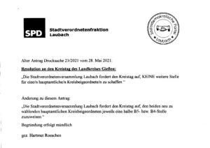 SPD Laubach gegen weiteren Politikerposten im Landkreis